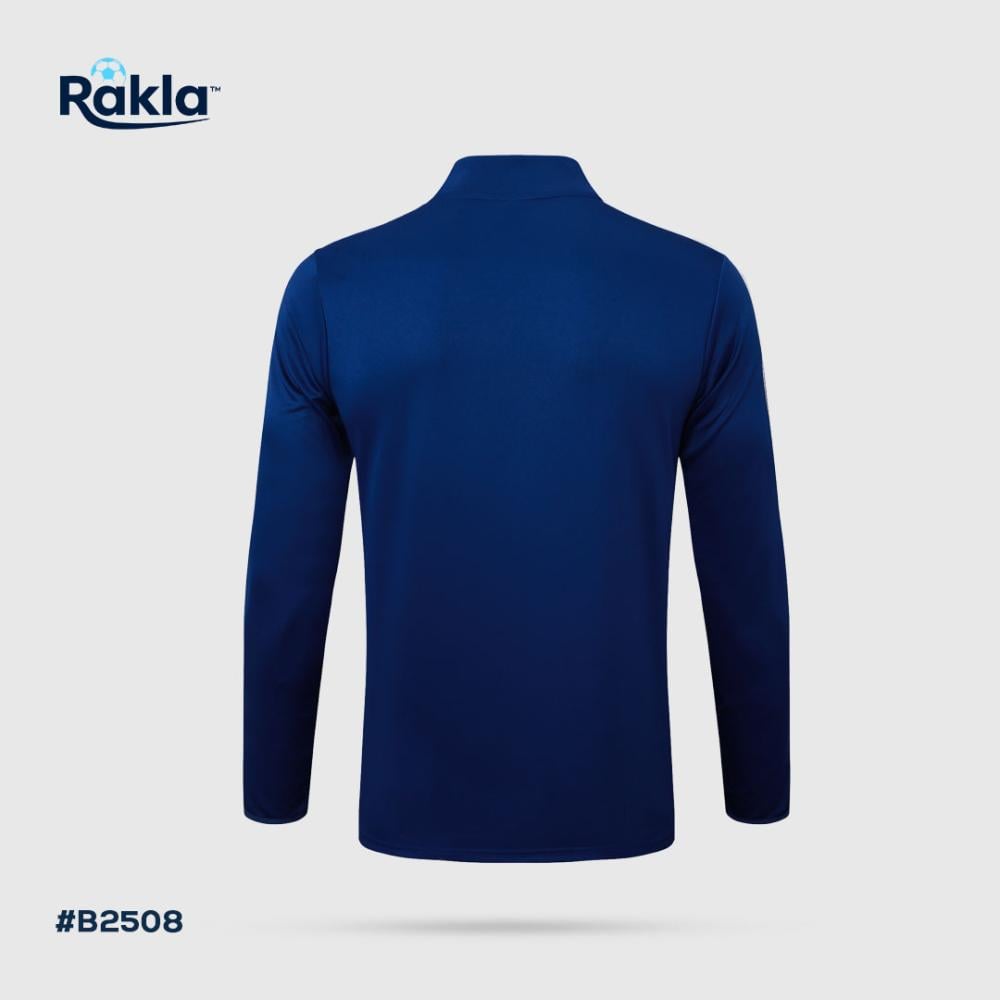 - التصميم: قميص تدريب ذو طابع كلاسيكي، يتميز بأكمام طويلة وياقة عالية مع ربع سحاب، قصة رياضية مريحة تضمن حرية الحركة.