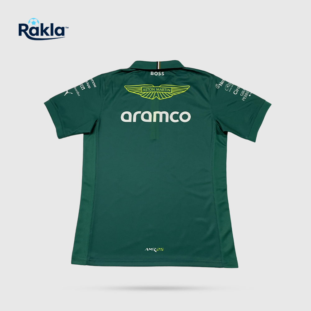 - شعار مطبوع بجودة عالية: شعار أرامكو واضح على الصدر يعبر عن دعمك لشركة رياضية رائدة في عالم سباقات الفورمولا 1.