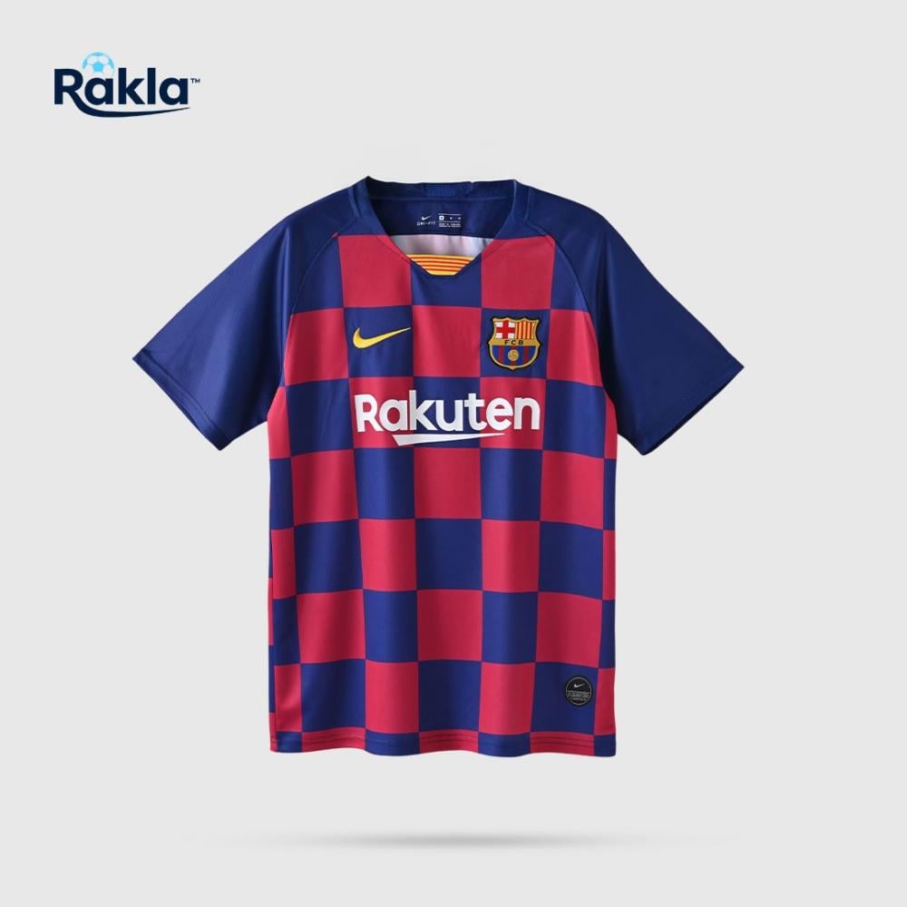 - الشعارات: شعار (Nike) باللون الأصفر وشعار (FC Barcelona) على الصدر، وشعار الراعي الرئيسي (Rakuten) باللون الأبيض في منتصف التيشيرت.