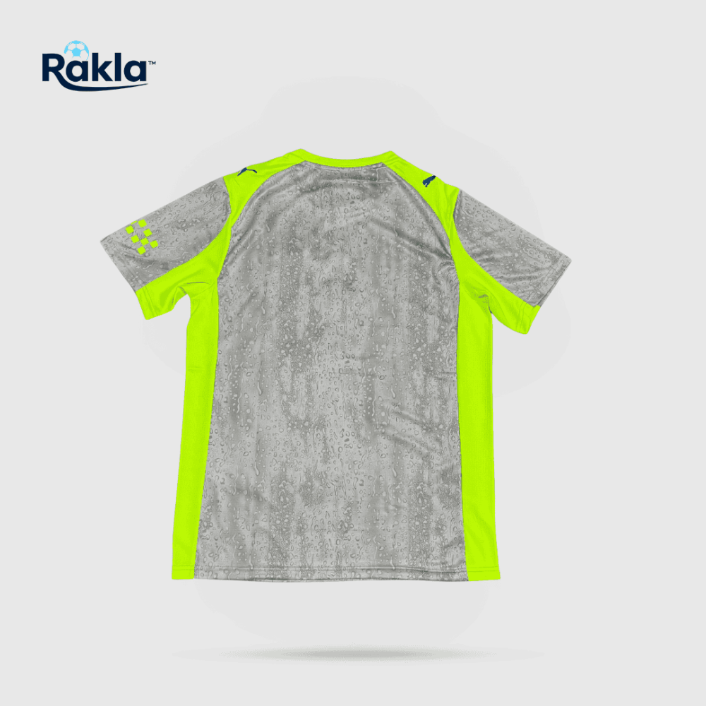 - التصميم: يتميز بتصميم أنيق باللونين الرمادي والفلورسنت، مع تفاصيل على الجوانب باللون الفلورسنت، ونقش على كامل التيشيرت باللون الرمادي.