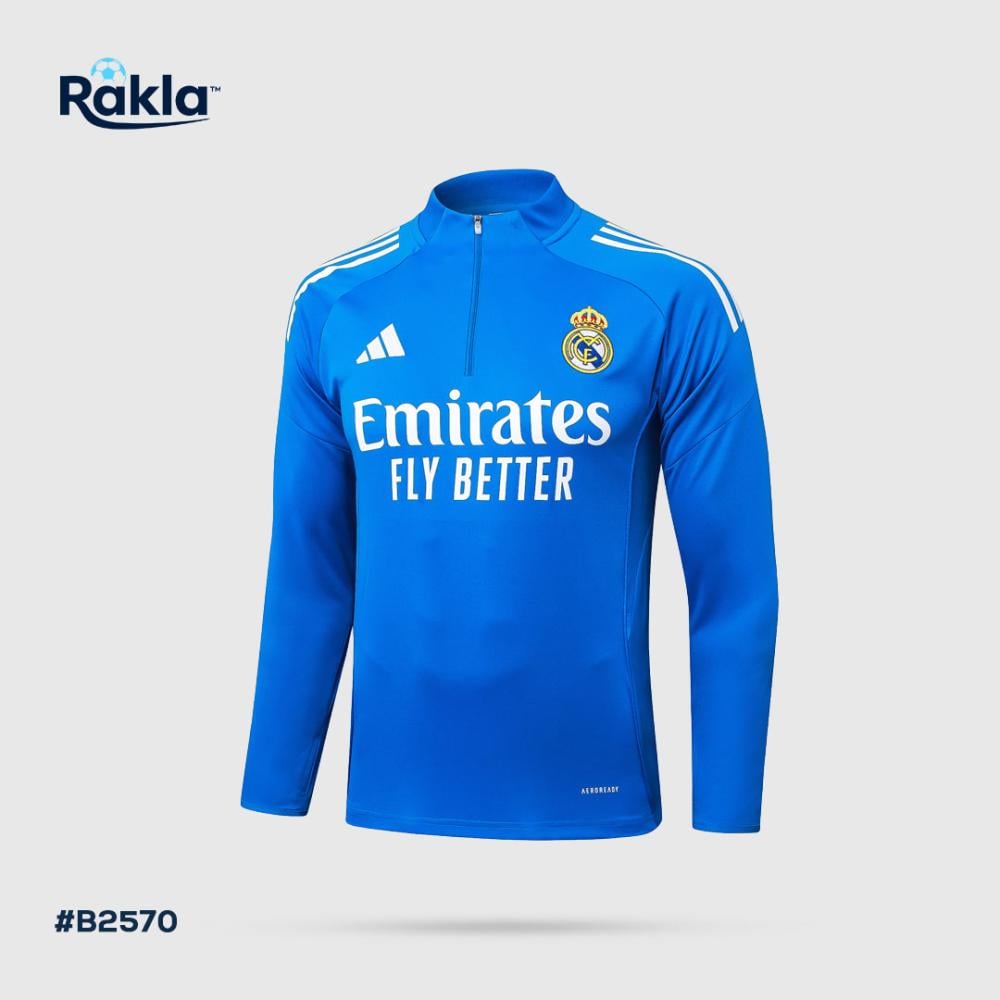 • الشعارات: يتألق شعار ريال مدريد الملكي وشعار الراعي الرئيسي Emirates Fly Better باللون الأبيض، إلى جانب شعار أديداس.