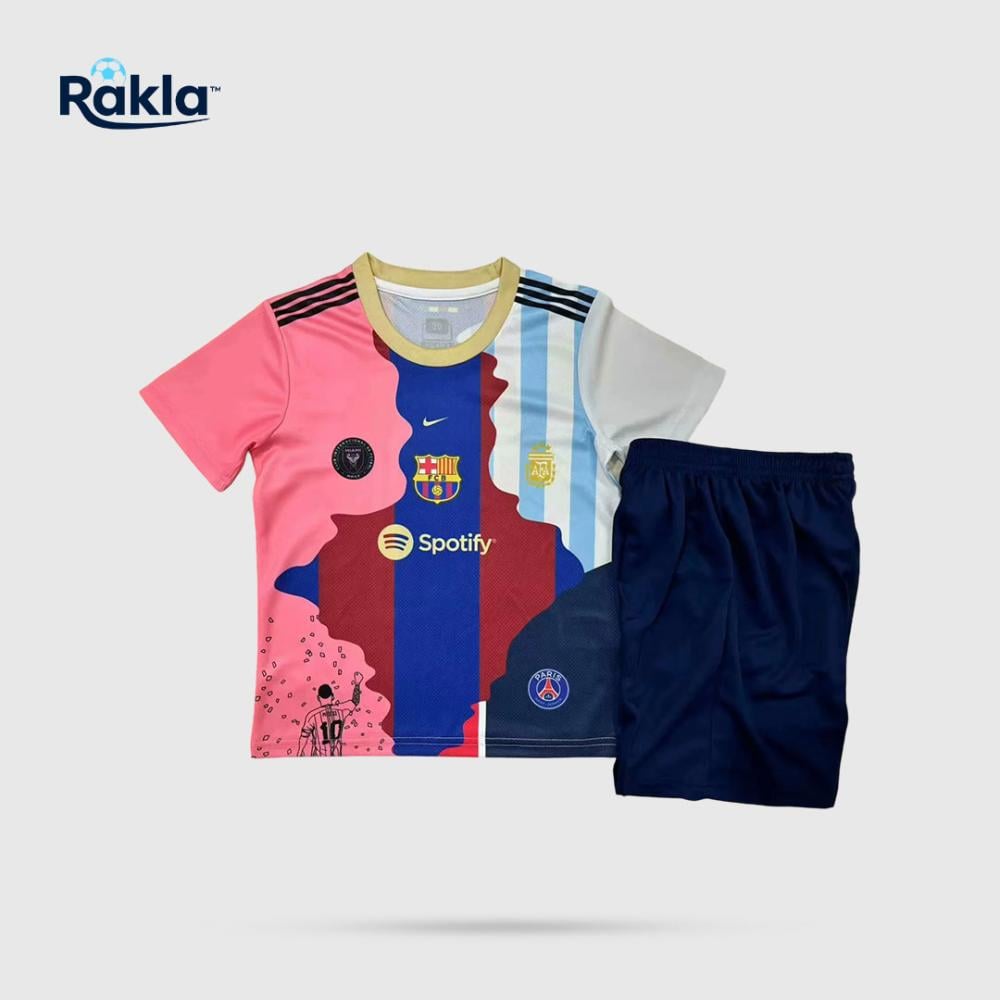 لا تفوت فرصة امتلاك طقم ميسي (أعمار صغيرة) بتصميمه الفريد الذي يجمع لحظات التألق في نادي ومنتخب، متوفر الآن في متجر ركلة بجودة عالية وتفاصيل مبهرة تليق بأسطورة، اطلبه اليوم ودع طفلك يرتدي إلهامه الكروي بكل فخر وأناقة.