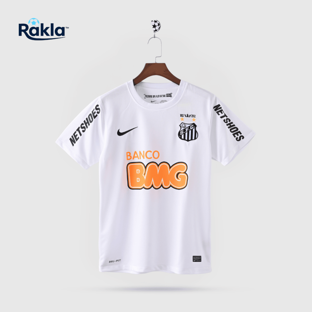 - الشعارات: يتميز القميص بشعار نادي سانتوس على الصدر، مع شعار نايكي على الجهة المقابلة، وشعار الراعي (BANCO BMG) بالبرتقالي، إضافة إلى لمسة Bi-Mundial 2012 في إشارة إلى فوز النادي بلقبين عالميين.